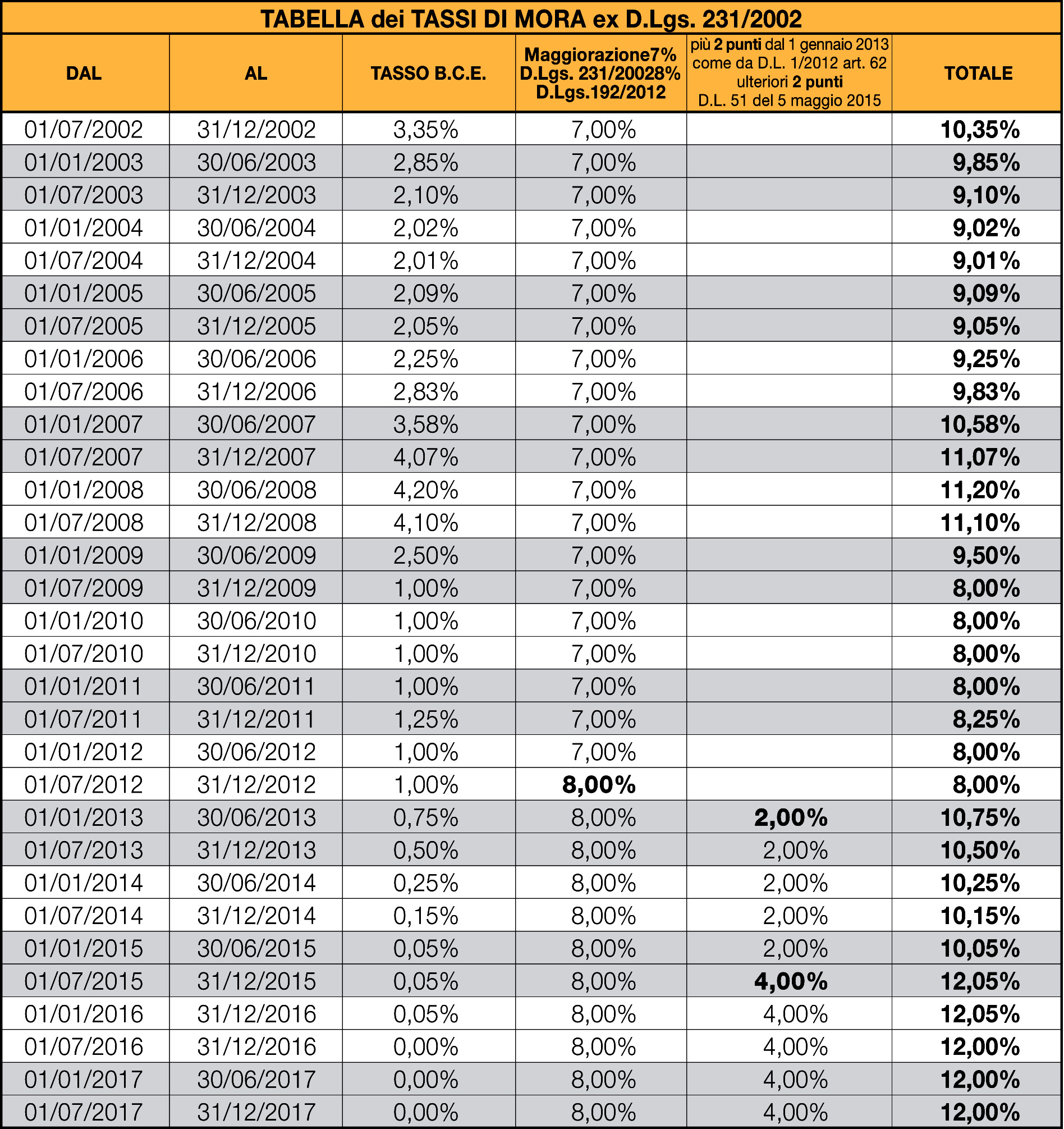 Home Tabella TASSI DI MORA Tabella TASSI DI MORA