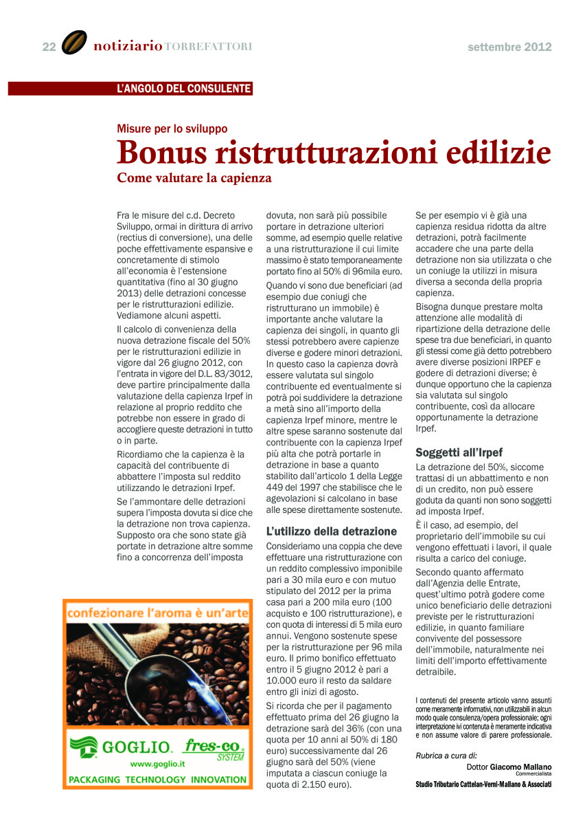 Notiziario Torrefattori Settembre 2012