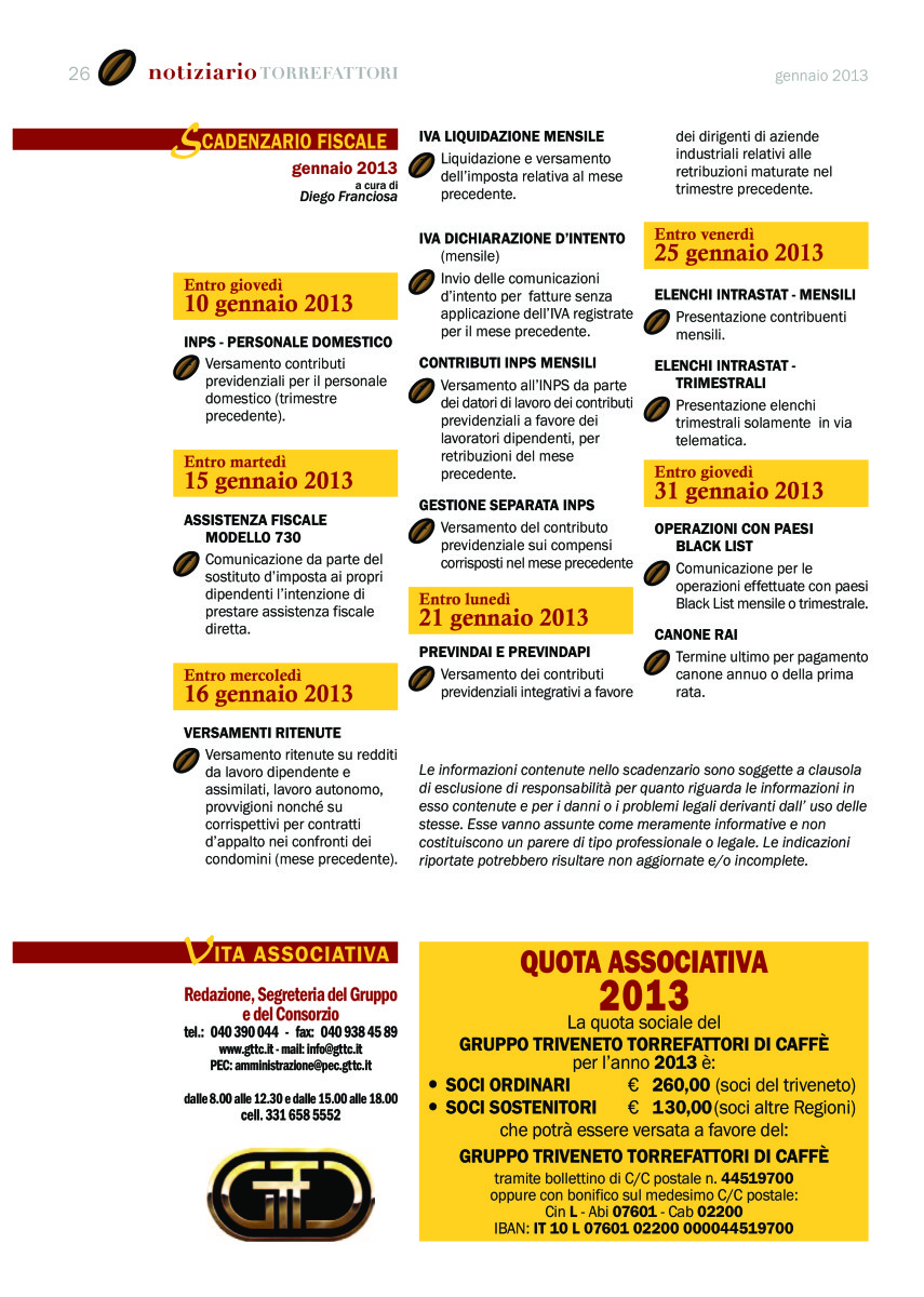 Notiziario Torrefattori Gennaio 2013
