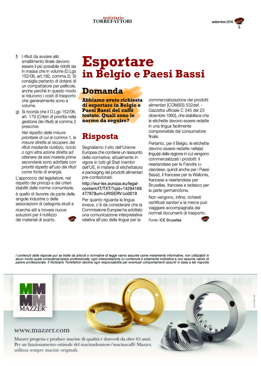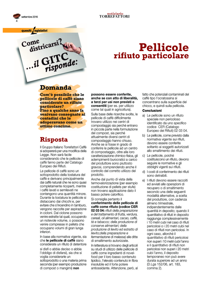 Notiziario Torrefattori Settembre 2016
