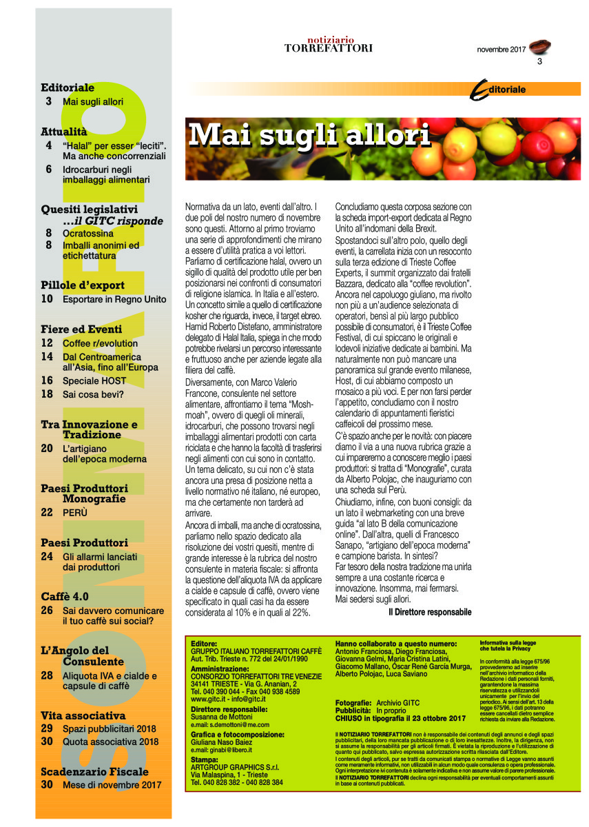 Notiziario Torrefattori Novembre 2017