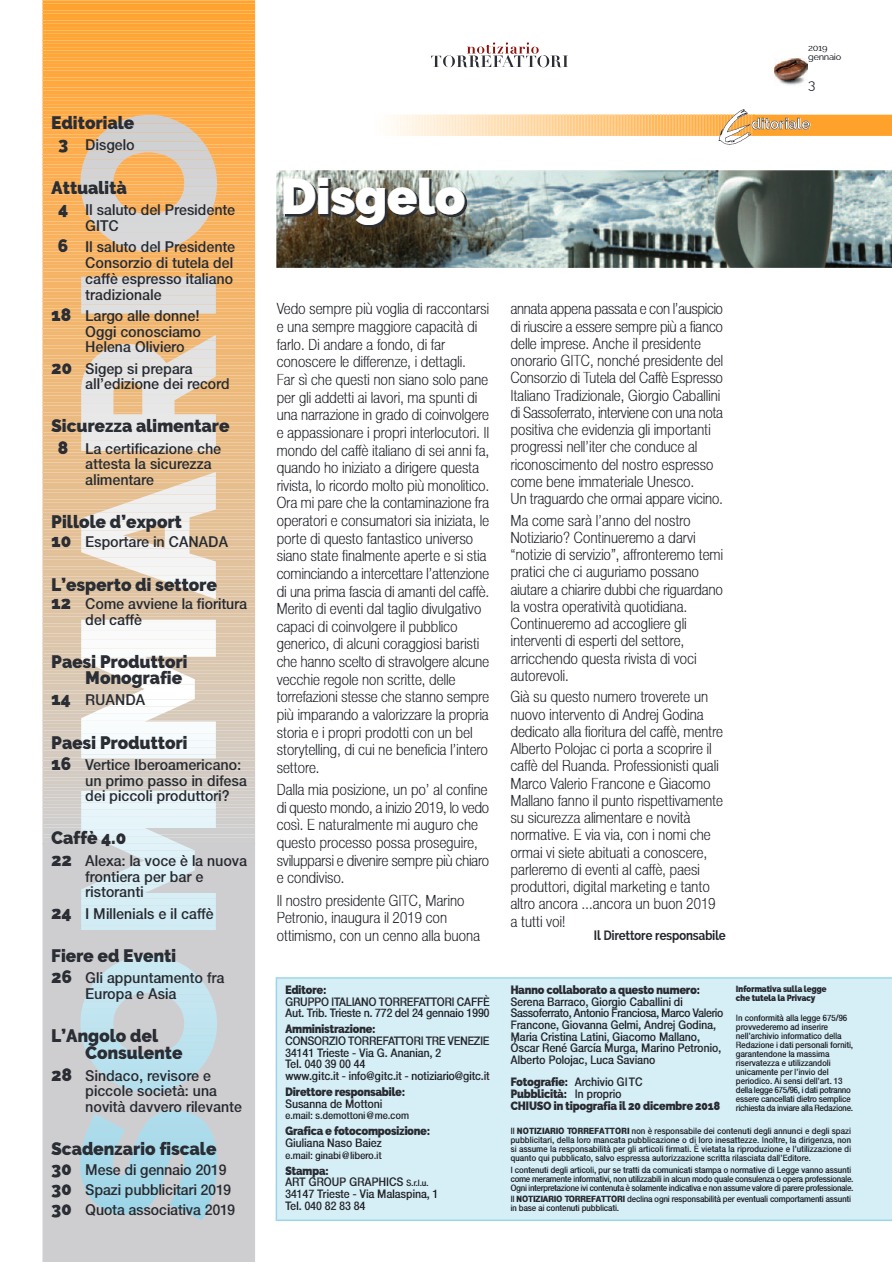 Notiziario Torrefattori Gennaio 2019