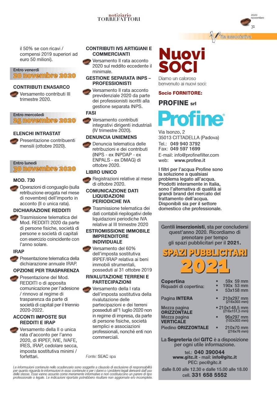 Notiziario Torrefattori Novembre 2020