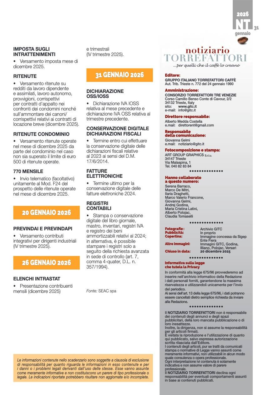 Notiziario Torrefattori Gennaio 2026
